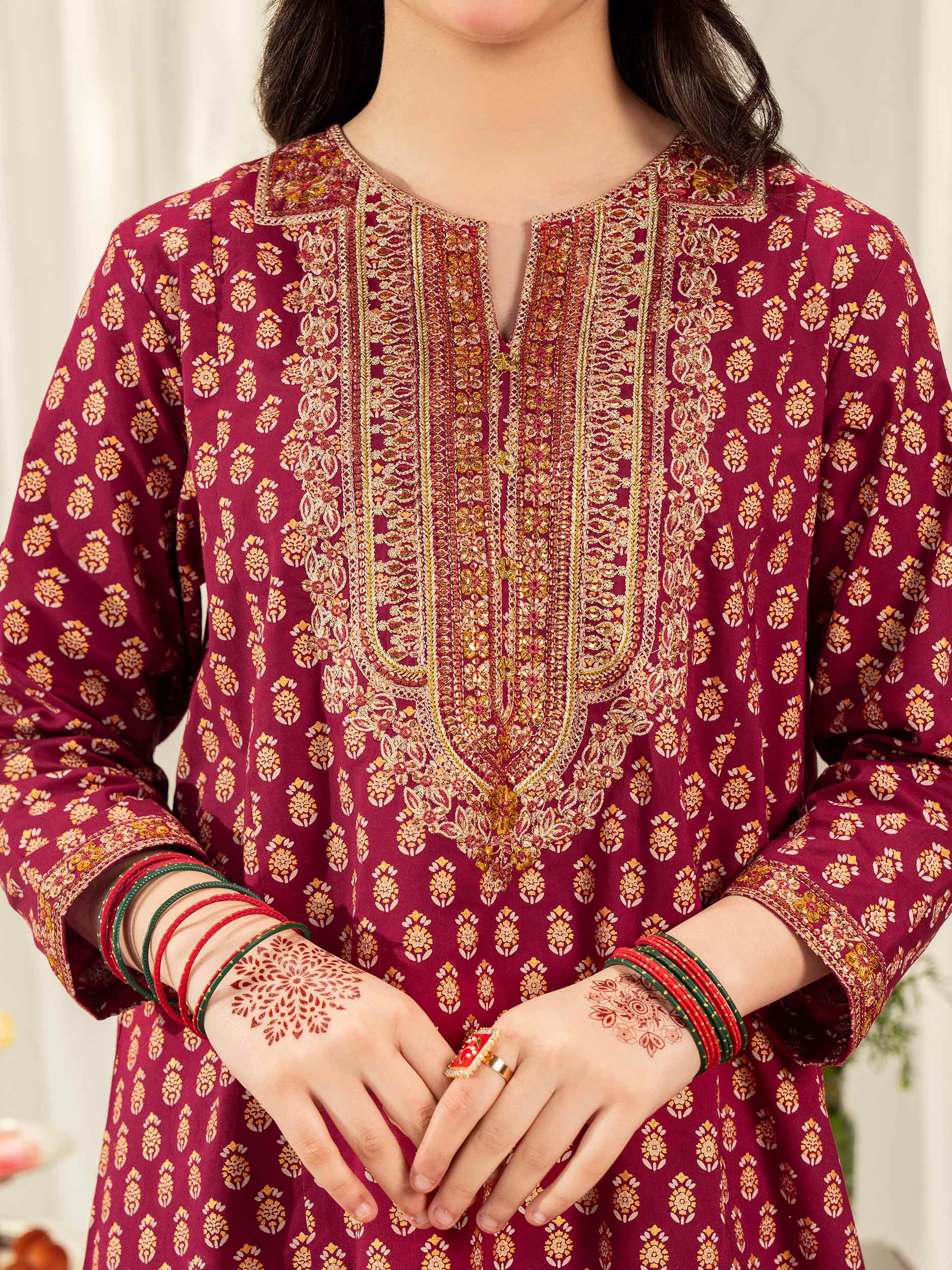 • Paste print embroidered narrow-leg shalwar with elasticised waistband
