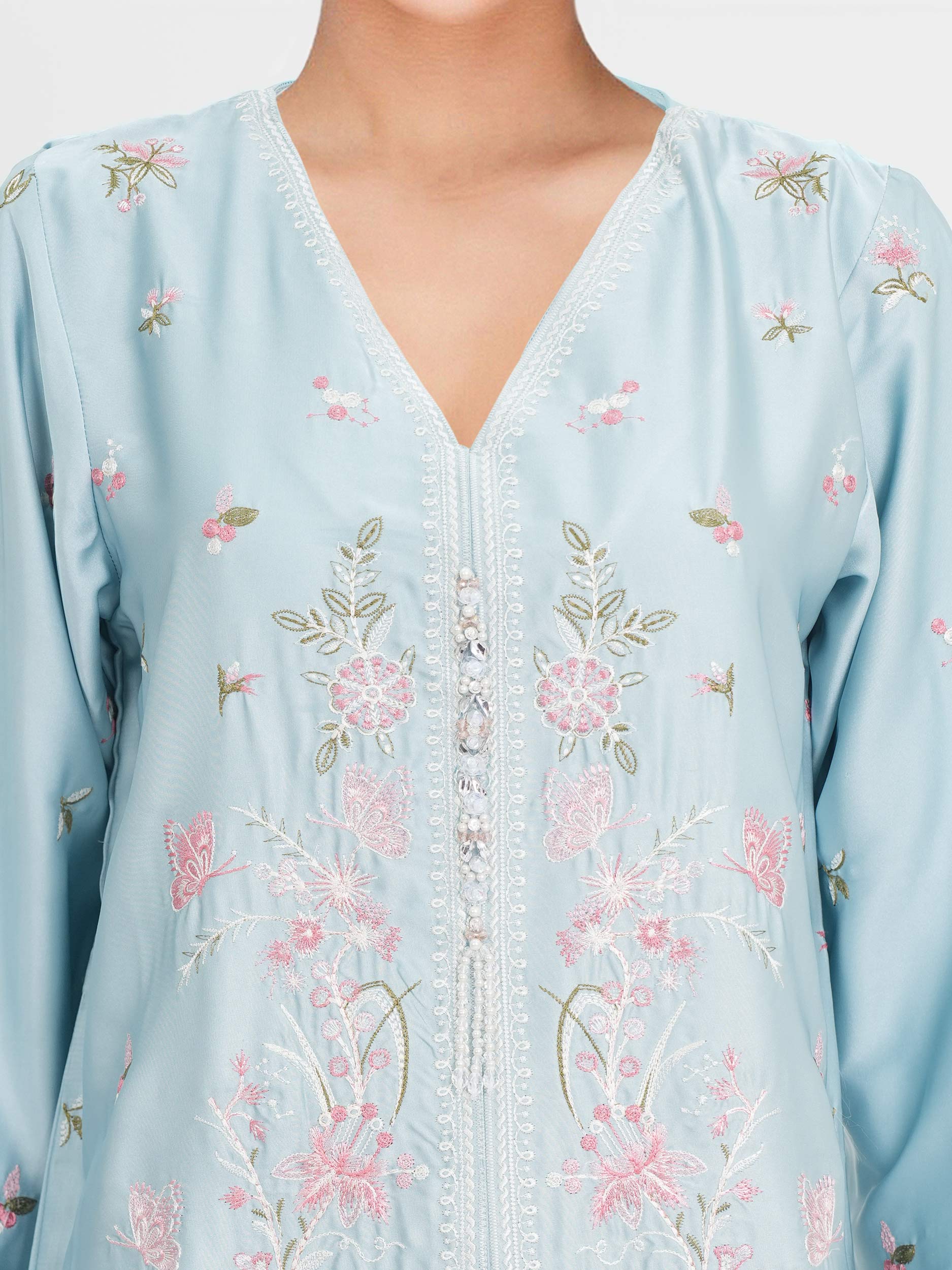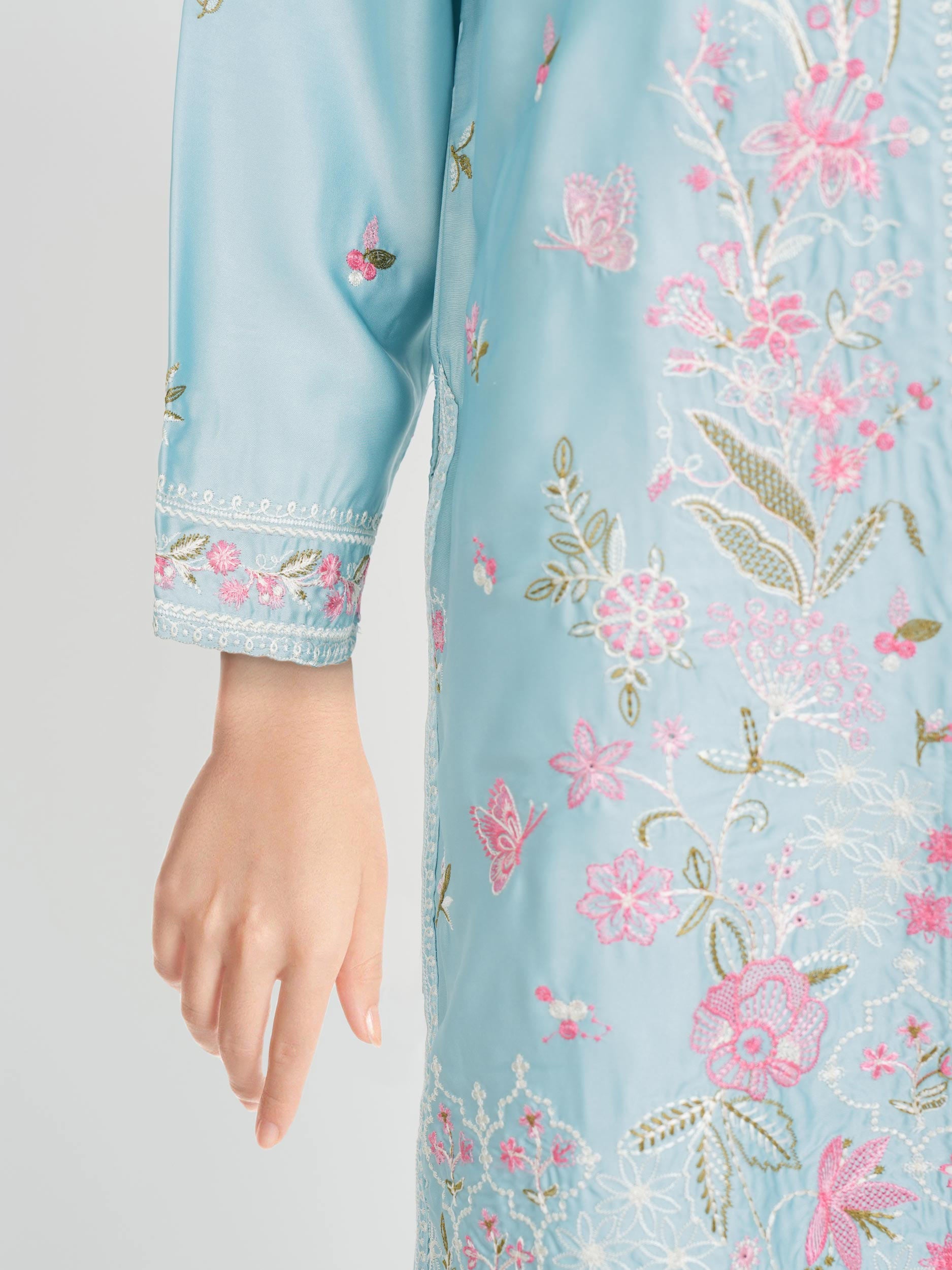 Wash light and bright colors separately. Do not bleach. Do not twist/wring, warm iron to sequined, beaded, and delicate fabrics. Do not dry in direct sunlight.