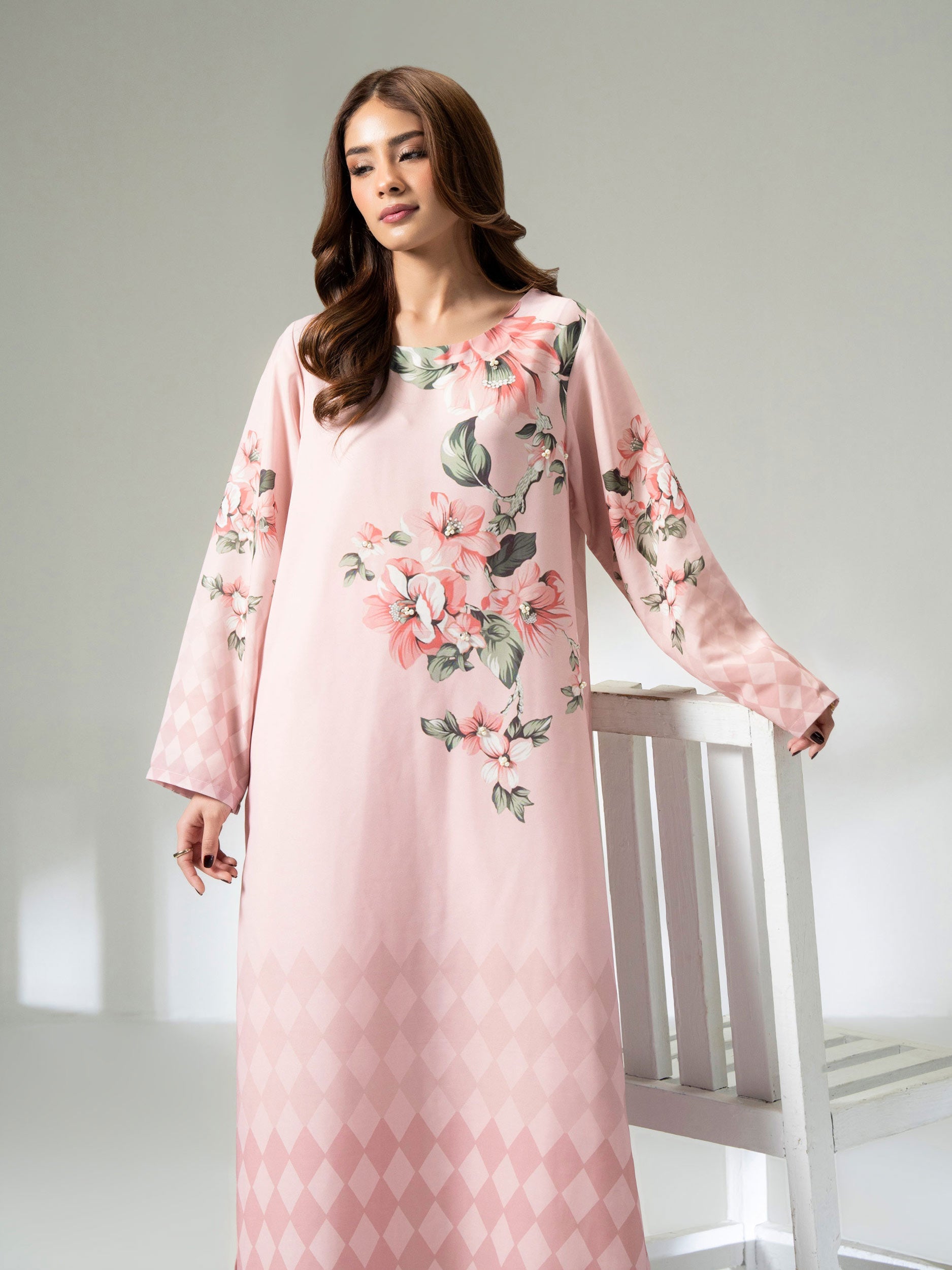 Wash light and bright colors separately. Do not bleach. Do not twist/wring, warm iron to sequined, beaded, and delicate fabrics. Do not dry in direct sunlight.