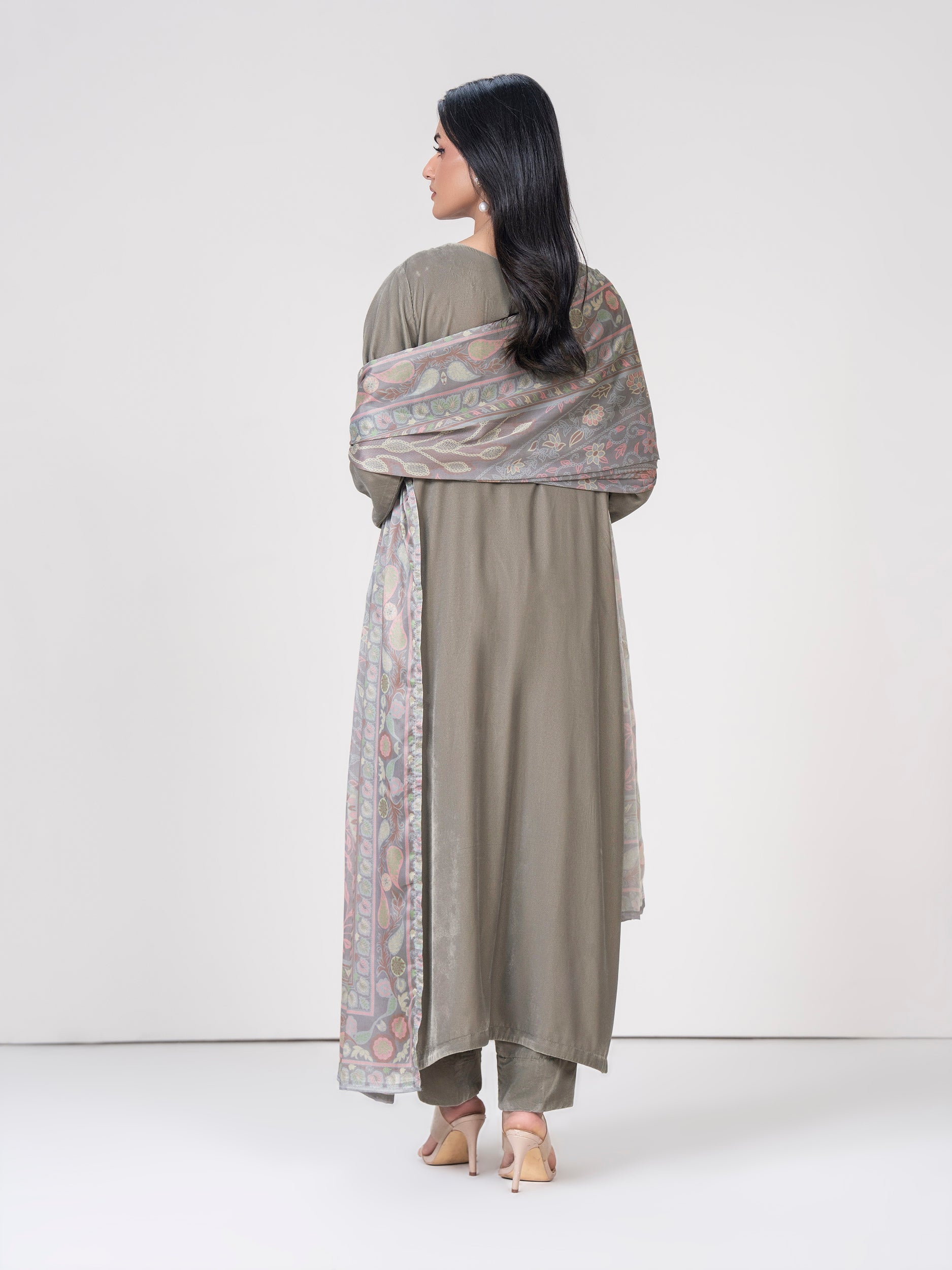 3 Piece Velvet Suit- Embroidered (Pret)
