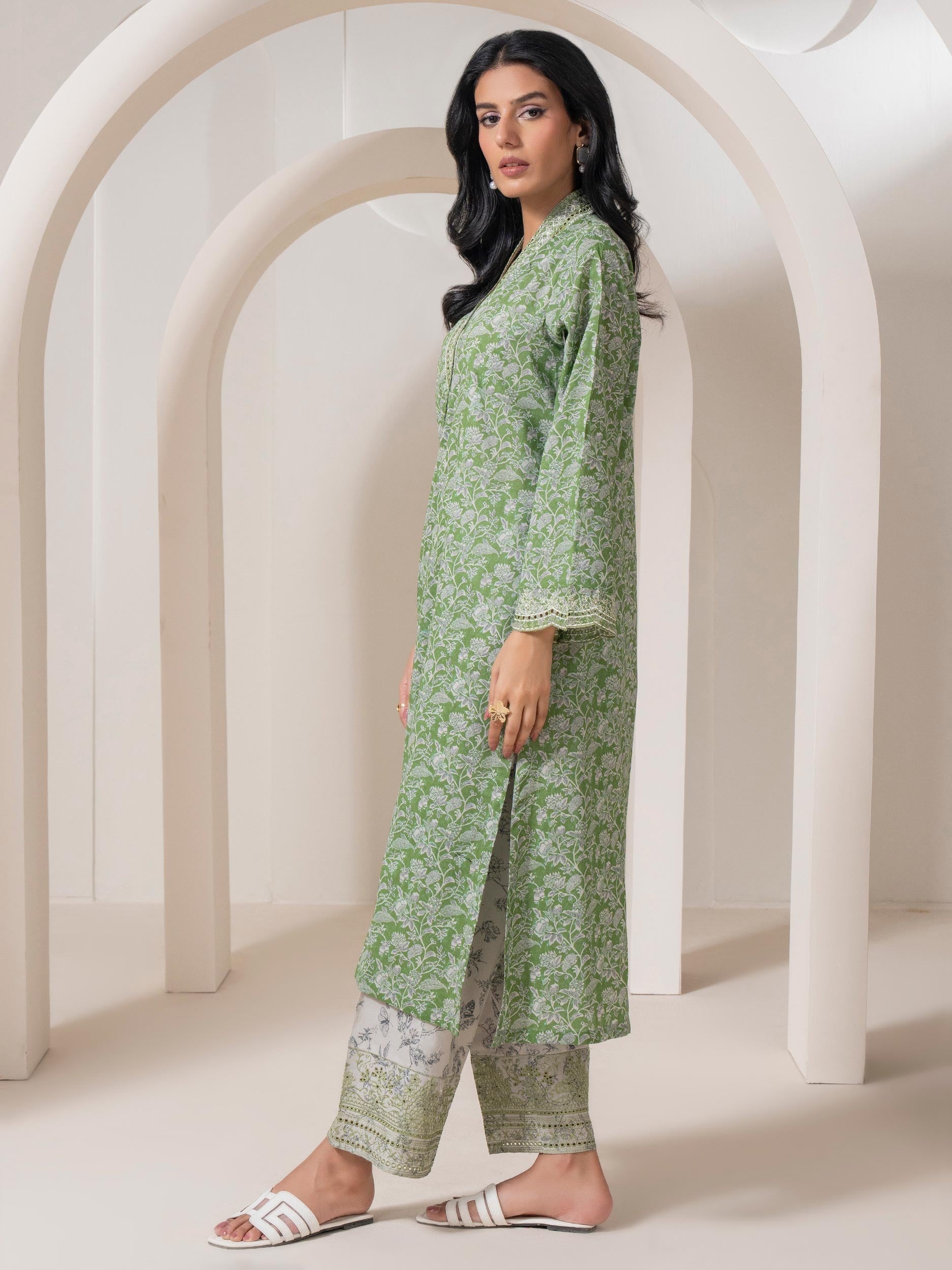 - Printed shirt featuring schiffli embroidery on the neckline and sleeves