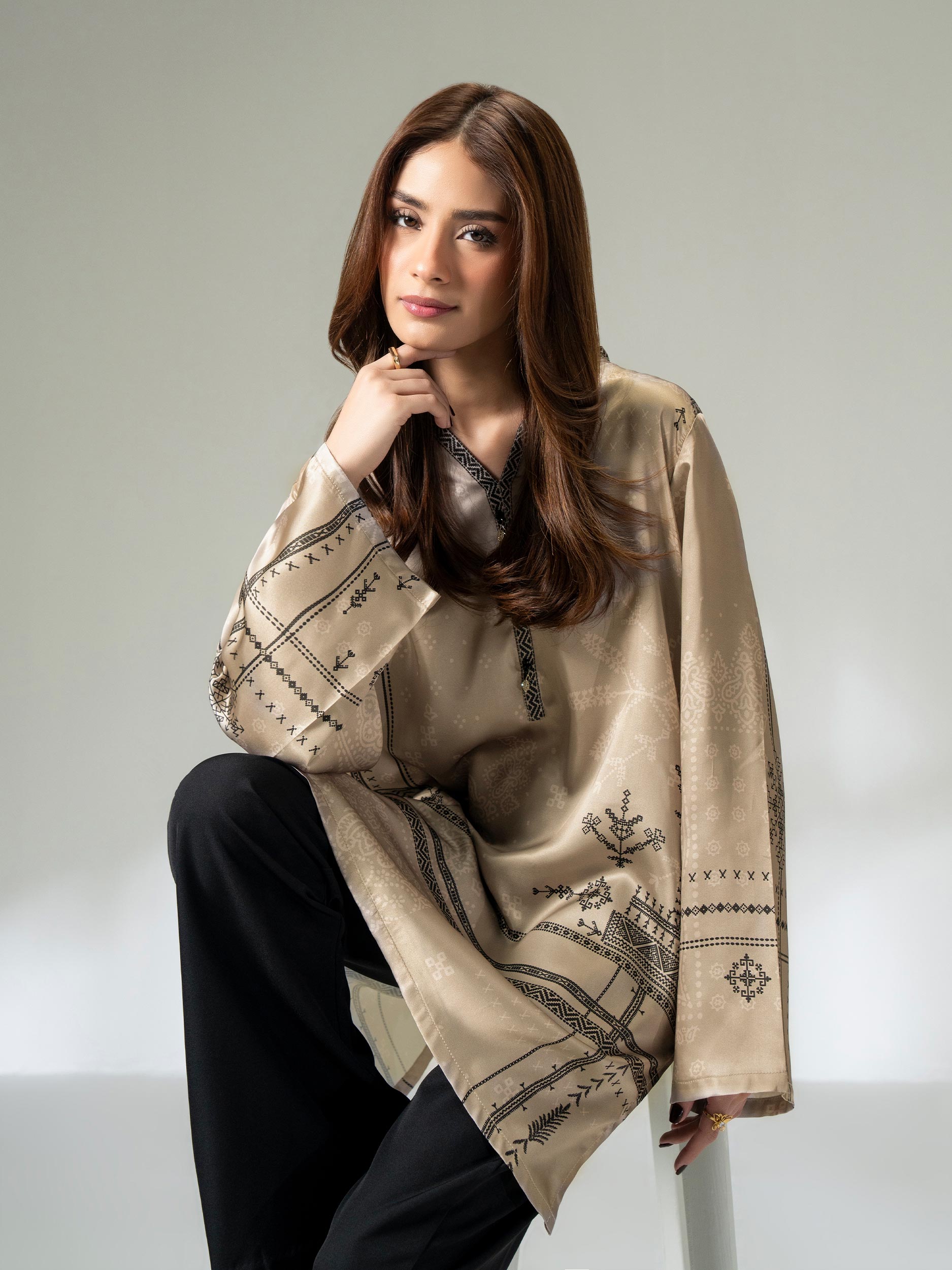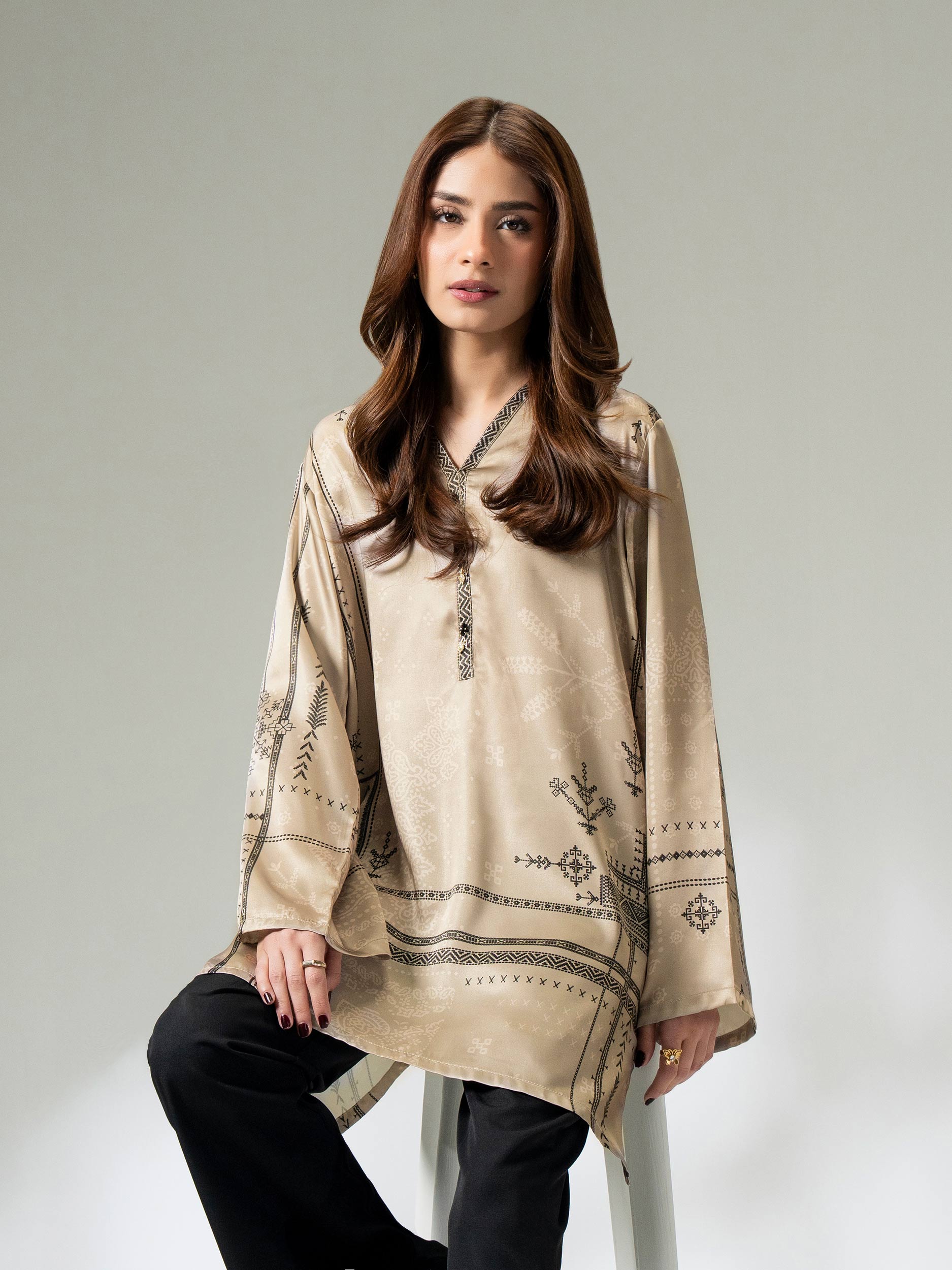 - Printed top with an embellished neckline