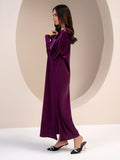 - Dyed long dress with plates on the sleeves with cuff and zip closure