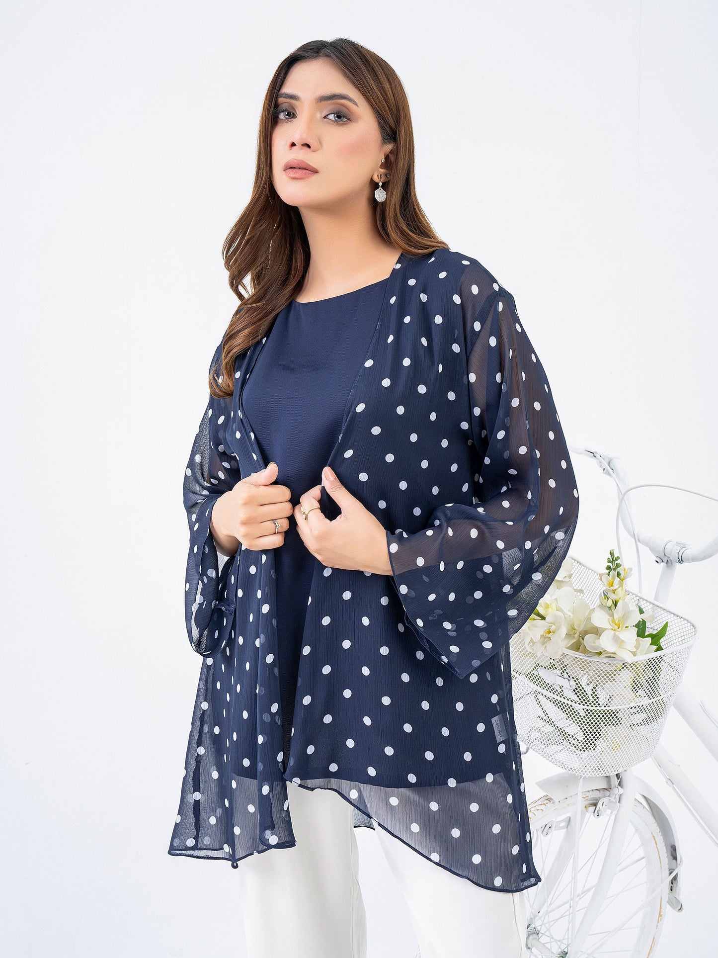 Printed Chiffon Cardigan With Slip