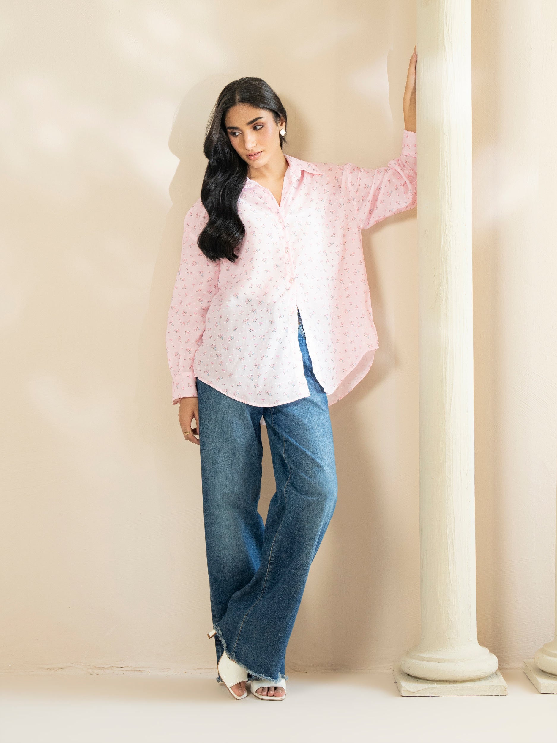 • Button-down top with cuff sleeves
