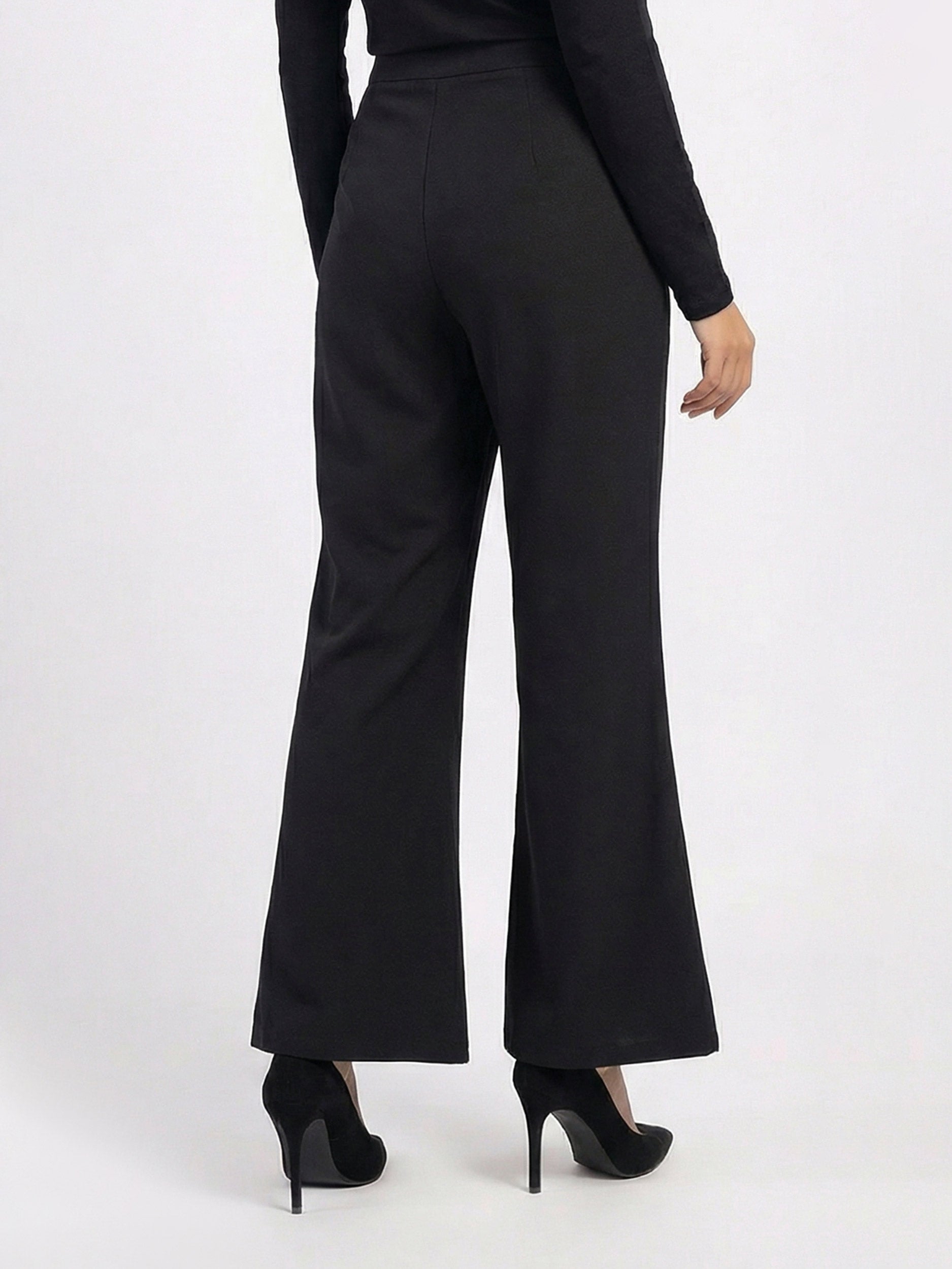 - High-waisted formal wide-leg pants with front pleats, finished with a front zip closure